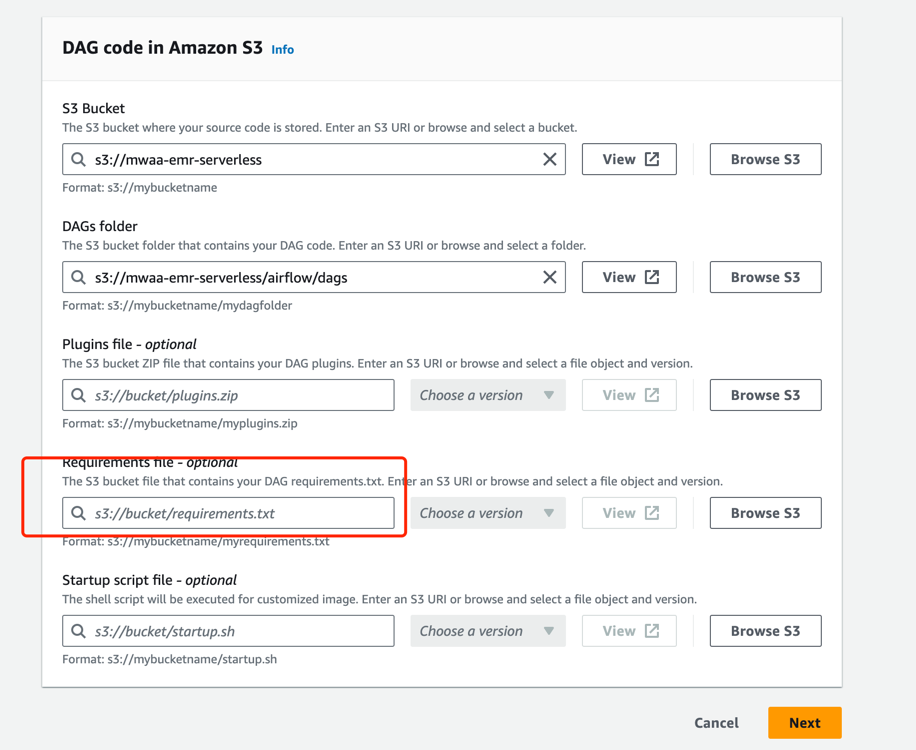首先是准备 Airflow Dag 文件,将文件上传至s3://mwaa-emr-serverless/airflow/dags/