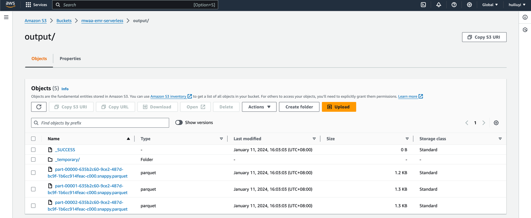 执行完毕后,我们就可以在 S3 Bucket 里面查看处理后的数据
